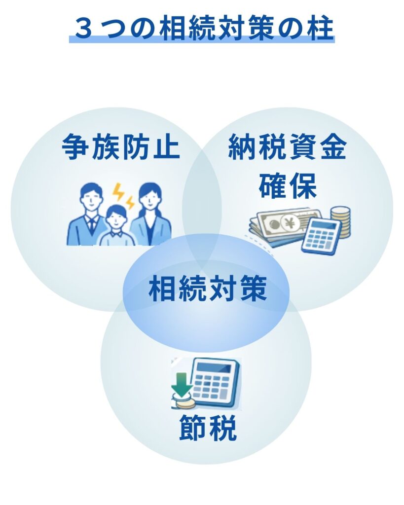 お客様の思いを大切にしながら、生活基盤の確保、親族間のバランス、税負担や納税資金の準備、将来を見据えた二次相続まで、さまざまな角度から総合的に検討し、お客様にとって最適な相続を目指します。